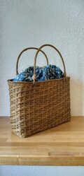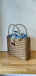 ♪ かごのサイズに合わせた巾着も作ってみました。かごに取り付けませんでしたので、万が一巾着を汚してしまっても巾着は洗濯できますし、他の同じサイズのかごにも使用できるようにしてみました。