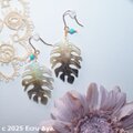 ピアスパーツにモンステラを下げたときに、輪の中にスリーピングビューティのラウンドを通しました