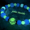 薔薇 夜光彫り水晶 ブルールミナスストーン 夜光石 天然石ブレスレット