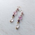 チェコガラスも淡水パールも、ピンク~パープル系でそろえたシンプルなロングタイプのイヤーアクセサリー。