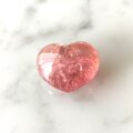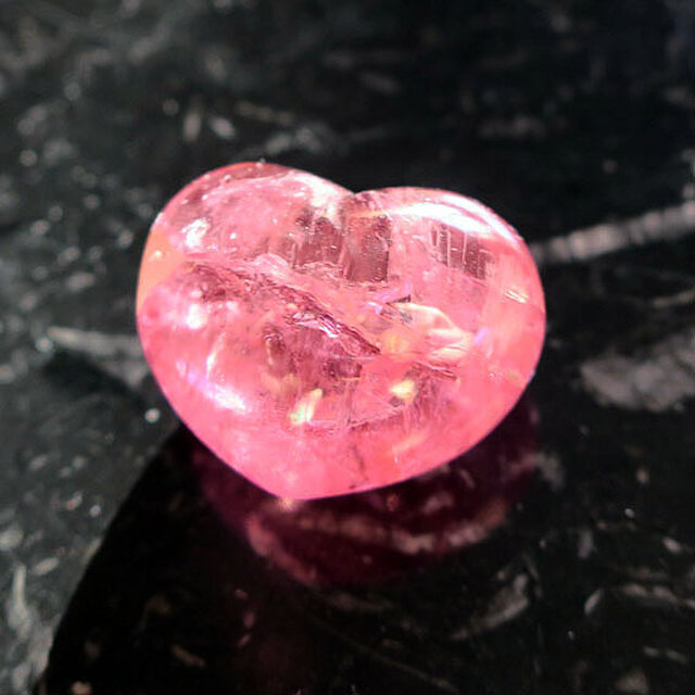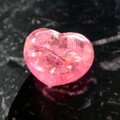透明感のある高品質のピンクトルマリンに、カービング技術の最高峰として有名な、イーダーオーバーシュタインカットが施された、かわいいぷっくりハートシェイプ・カービングです。ですが、カービング工程において、欠けが入ってしまった部分があり、表面補修してあるB品です。