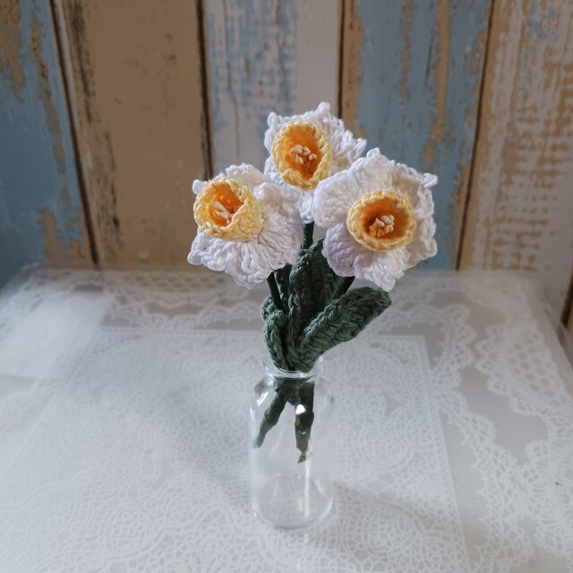 水仙モチーフ 3本 ミニ瓶付き ハンドメイド