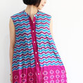 ★インドの伝統的な手織りパトラ織(ダブルイカット)のシルクサリーをアップサイクルして仕立てた、贅沢な一着。