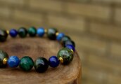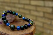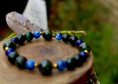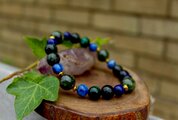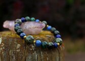 4つの石の相乗効果で、霊性、心理能力を高め、未来を見通し、困難に打ち勝つ勇気を持って、自分自身の人生を切り開いてゆけるように助けてくれるブレスレットです。