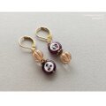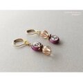 お顔のビーズは金太郎飴のようなガラスです。周囲のむらさき色と口の赤が透かすときれいです。