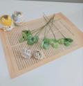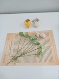 しろつめくさのもとぶは淡い赤紫に染め2本、三つ葉3本と四つ葉のクローバー3本の単品になります。