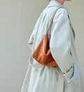 肩に沿って細くなるショルダーストラップと、しなやかで柔らかいフォルムが特徴。古美仕上げのジンク合金パーツも、上質で落ち着いた雰囲気を演出します。