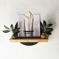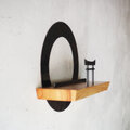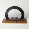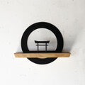 鉄のリングと鳥居、そして岡山県のヒノキ材を組み合わせた、壁付けタイプの神棚です。