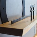 鉄の円は「永続」や「調和」を象徴し、また陽イオンを形成しやすい鉄と、日陰でも育つ陰樹・ヒノキを組み合わせることで、「陰と陽」という自然の調和も表現し、素材の選定から仕上げまで、細部にまでこだわって制作しています。