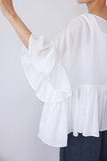 • 切り替え部分にはフリルとギャザーを施し、ナチュラルながらも可愛らしさをプラス。
