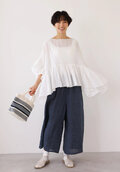ふんわりエアリーポトップ プルオーバータイプ 麻100% ブラウス ホワイト 250709-1