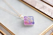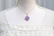 青、ピンク、紫が滲みあう美しいカラーリングに魅入られてしまうペンダント。