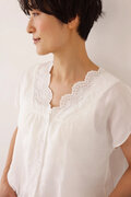 繊細な刺繍レースで上品に魅せる~麻100% Vネックブラウス 半袖ブラウス 250710-1