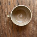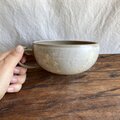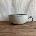 荒めの土でろくろ成形して、ミモザ柄を手描きで描いたスープボウルです。