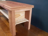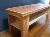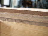 【材料】 天板は屋久杉無垢板厚さ7ミリを合板12ミリに貼り使用、その他部材は杉・ヒノキを使用。