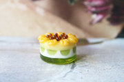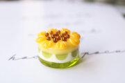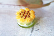 バーナーワークの技法で制作した、とっても小さな向日葵モチーフのケーキです。