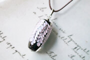 黒の地に藤を咲かせた、ガラス製ペンダントです。