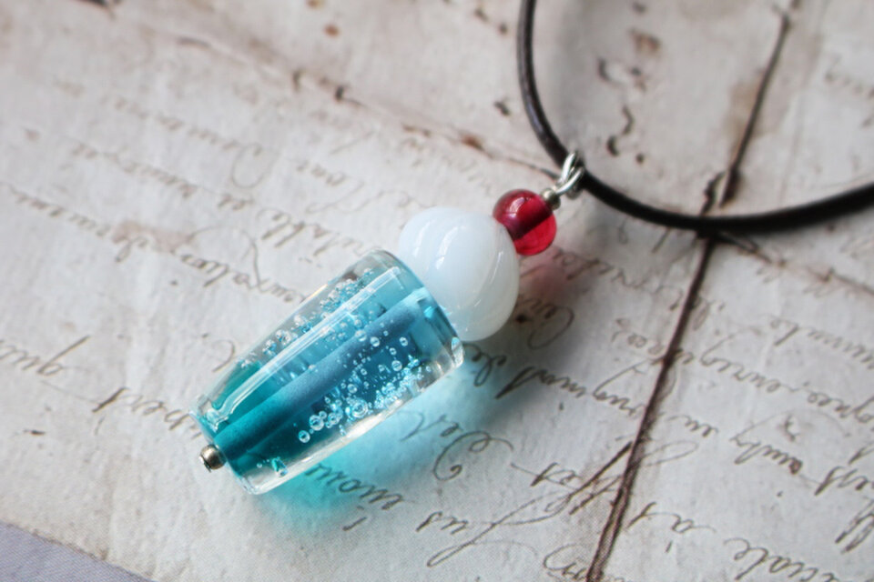 ガラスで作ったクリームソーダをペンダントにいたしました。
