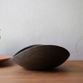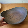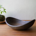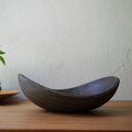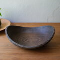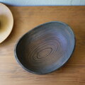 山梨県身延町産のケヤキ材を使って、大きめサイズのボウルを制作いたしました。個性的な形のナチュラルエッジのボウル、さらに黒く染めて凛とした表情に仕上げております。