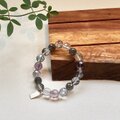鮮やかなラブラドレッセンスのブルーと薄紫のアメジストが硬質なグレークォーツの光沢に柔らかなニュアンスを添えてくれます。