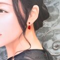 18K金具を使用した真っ赤なティアドロップモチーフのスイングピアス