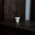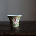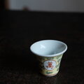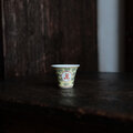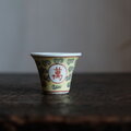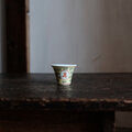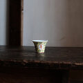 萬と寿◆中国景徳鎮 色絵小ぶり猪口(茶杯) 茶器 花唐草 チャイナレトロ 黄色 パステルカラー b1