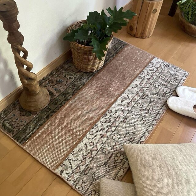 64×91 ナチュラル系 ブラウン ボタニカル トルコヴィンテージラグ