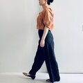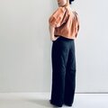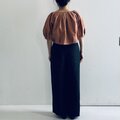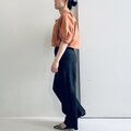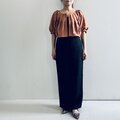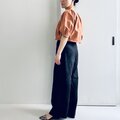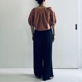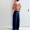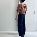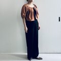 デザインは衿ぐりや袖、裾と全体的にタックを入れ、着丈をジャストウエスト位の短さにしています。シンプルなワンピースやハイウエストパンツ、タイトロングスカートなどと相性が良さそうです。ショート丈のおかげで脚長効果が期待できると思います。