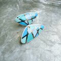 "Shades of Blue Shield Mosaic"とタイトルのついたセラミック製イヤリング。
