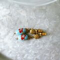 グリーンとレッドのフラワーが裏表に描かれたビーズ。ゴールドフラワーのパーツをアクセントに、レトロでオリエンタルなムードが魅力的です。