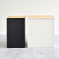 シンプルなフレームに、天然木積層合板の蓋を組み合わせたデザイン。ゴミ箱であることを感じさせない、空間に美しく溶け込む存在感が魅力です。