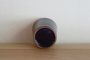 本作の釉薬には「貫入(かんにゅう)」というひびが入っております。このひびに茶渋などが溜まると黒っぽくひび模様が出てまいります。貫入模様が入っていく変化をお楽しみ頂く場合にはそのままご使用ください。