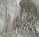青い月と森の刺繍をした物がたっぷり入るバッグです。表の生地は二重織りの綿でしっかりした感触で素朴な風合い。中はライトパープルの綿で撥水加工がされています。サイドにスナップボタンが付いているのでお好みで留めてみても○ 秘密の森を抜けていくようにほんのりメルヘンな日常を。