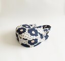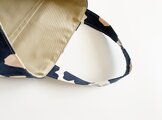 凸凹ドットフラワー ラウンド型バッグ ナチュラル×ネイビー 外ポケット A4 綿麻キャンバス