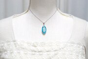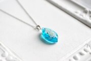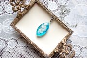 爽やかなマリンブルーの背景にお花とパール、ブリオンをあしらった可憐なペンダント。