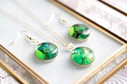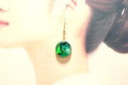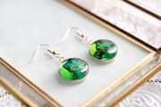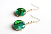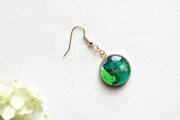 滲んだ二種類の緑と黄緑が鮮やかで明るいピアス。