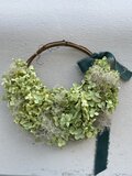 綺麗にドライになった黄緑色のアナベルでハーフリースを作りました。