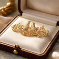 艶を抑えたアンティーク調ゴールドカラーが、落ち着いた華やかさをプラスし、甘くなりすぎない印象に。