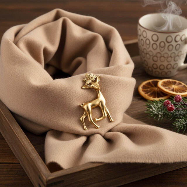 繊細な角が印象的な、小鹿モチーフの真鍮製ブローチ。どこか幻想的で優美な佇まいは、冬の装いにぴったりです。低金属アレルギー対応で、肌にやさしい仕上がり。コートやバッグのワンポイントに、ギフトにもおすすめのアイテムです。