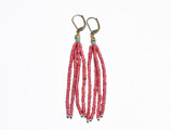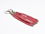渋い赤色のビーズはホワイトハーツと呼ばれるアンティークビーズです。芯(ハート)部分が白いことからこう呼ばれています。こちらは19~20世紀頃のヴェネチア産のビーズです。渋い赤色は金で赤色を発色させているため、このようなお色をしています、