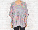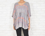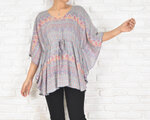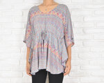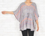 <夏のリゾートスタイル> ヴィンテージエスニック柄バタフライスリーブトップス 体型カバー✖涼感素材