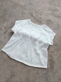 サマーセール!ビッグドット上質ホワイトコットン胸フリルブラウス