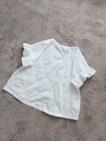 サマーセール!ビッグドット上質ホワイトコットン袖フリルブラウス