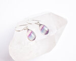 透明感とやさしい色合いが魅力の天然石、フローライトを使用したしずく型のピアスです。