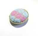 暑さの中にも、どこか凜とした涼しさを感じさせてくれる朝顔を、こぎん刺しでブローチに仕立てました。