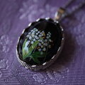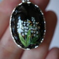 〜黒瑪瑙とすずらんのペンダント(金沢箔24K入り)〜