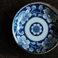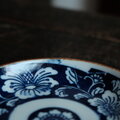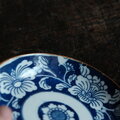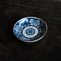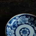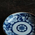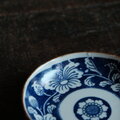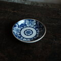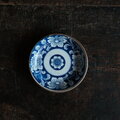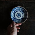 花とリーフ◆青で素敵。印判小皿 骨董・antiques 古道具 古民家 丁寧な暮らしに。明治期〜大正期