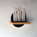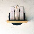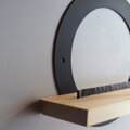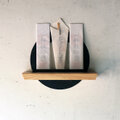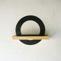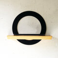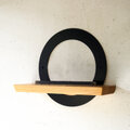 鉄のリングと鳥居、そして岡山県のヒノキ材を組み合わせた、壁付けタイプの神棚です。