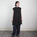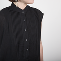 サラッと軽くて通気性◎ ライトコットン ピンタック チュニックシャツ ブラック 0723BK