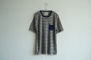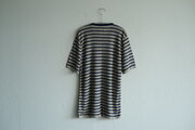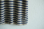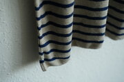 リネンニットボーダー半袖プルオーバー(生成×ネイビー)|メンズフリーサイズ